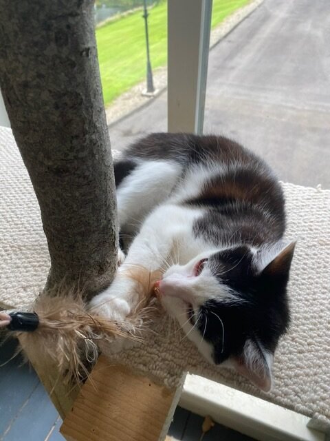 Enrichment playtime and lots of toys to keep your cat stimulated and happy.